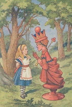 We find multiple instances of how Carroll may have written about his stuttering (and the people with whom he spoke) in Alice in Wonderland. Several striking examples are found in dialogue between Alice and the Red Queen: