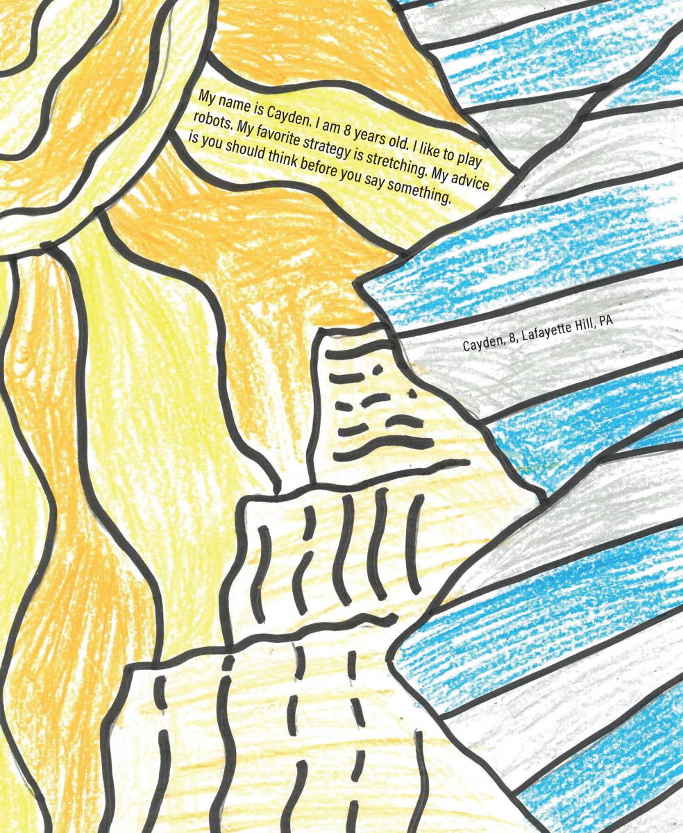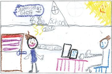 Art by Trevor, 8, of Oceanside, CA, says, "Speech looks like a river flowing, and then someone put a rock in it so it can't flow."
