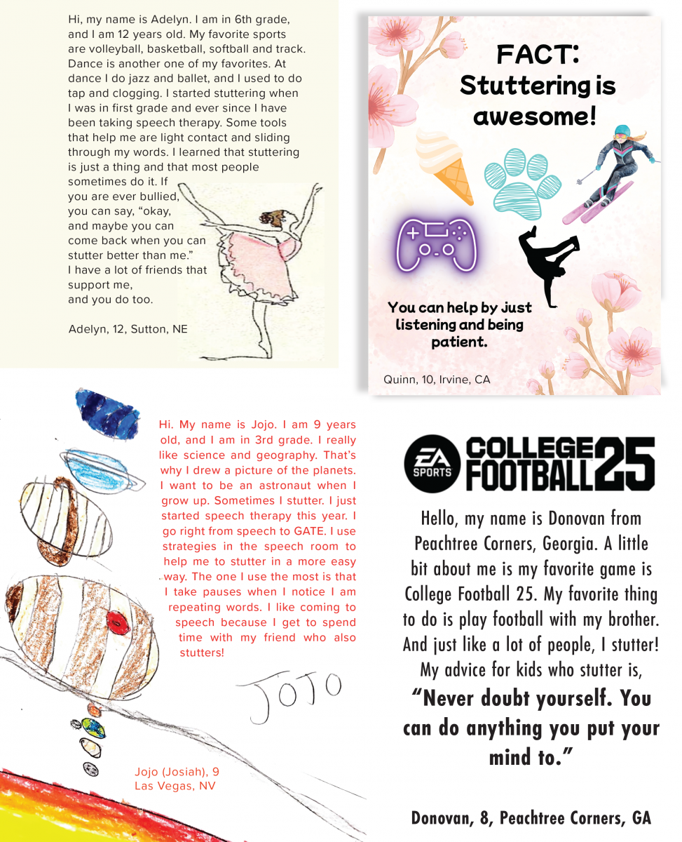 We’d love to hear about your dreams, your victories, the fears you have faced, the ways you’ve been challenged, or anything you wish people knew about stuttering!
